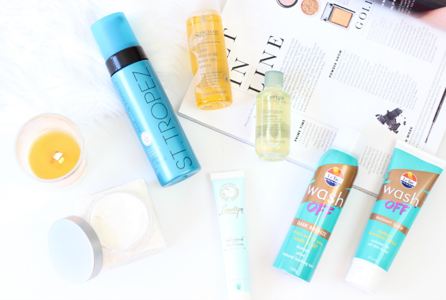 For body there has been some really cool concepts hitting the shelves. My favourite has to be the Sanctuary Spa 4 Day Moisture Body Oil Spray. If you're anything like me you hear the word oil and instantly think it's going to take ages to sink in and is going to leave a film on the skin but this does exactly the opposite. It's very light and dries extremely quickly. I'm unsure about the 4 day moisture claim but I do like the product. Another unique products comes from Laura Mercier with the Gel Body Moisture in Verbena Infusion. The scent is quite fresh which is lovely for this time of year and the consitency is a gel formulation which means you still get a good hit of moisture without it being heavy or greasy. A new bath release comes from Aveda with their Shampure Calming Aromatic Oil. The scent is so glorious and just applying it to my skin makes me excited to bathe in it as soon as I get the chance. The Lanolips Antibacterial Hand Cream is another new product I've been loving. It contains lanolin and aloe meaning the scent is fresh, moisturising but fast-absorbing yay! Le Tan have released the Dark Bronze Shade to their Wash Off line in the form of a lotion and spray. I've spoken about the Wash Off line before - I love it and the new shade is fantastic - less orangey more bronze. Yesterday I spoke about the new St.Tropez Self Tan Express which I've been aboustely loving and is pretty much my exclusive tan of the moment.