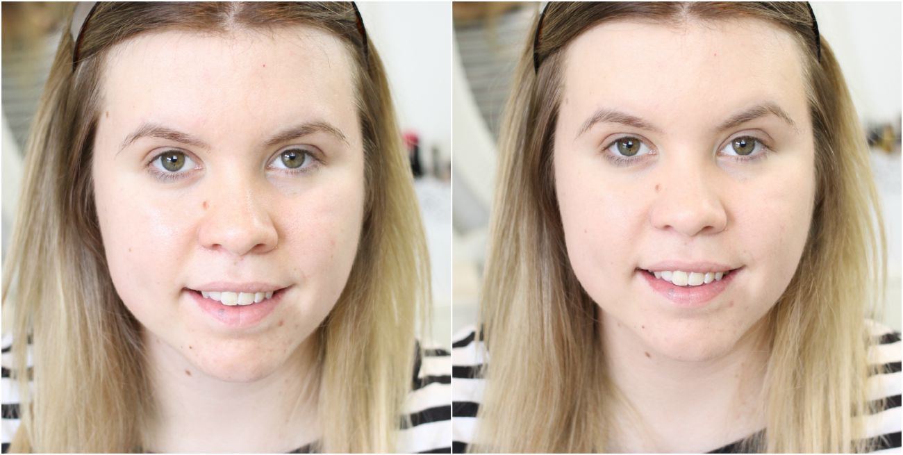 The texture of this foundation is super, super nice which I’m glad about because sometimes brands make promises and then it feels awful.. You know what I mean? But seriously the Miracle Match blends extremely well into the skin without much effort at all and then it feels really comfortable when set. I don’t think this is a medium coverage. I would say it’s a light/medium coverage but buildable. I’ve applied one pump all over my face and as you can see my skin imperfections are still quite visible. The finish is a little glowy but not in a disco ball way but in a healthy looks like skin way. I like it. What I don’t like is the extremely pungent biscuit-y smell that you have to put up with when applying. It’s strong and it’s not nice. In fact when I first tried this foundation I swore I’d never again (but I did for you guys!) and funnily enough after writing this I went to read other people’s reviews and not very many people mentioned it… Say what?! I digress. The smell does subside by the time you finish blending it over the skin and then it’s gone so if you can hold your nose whilst applying it’s probably for the best.