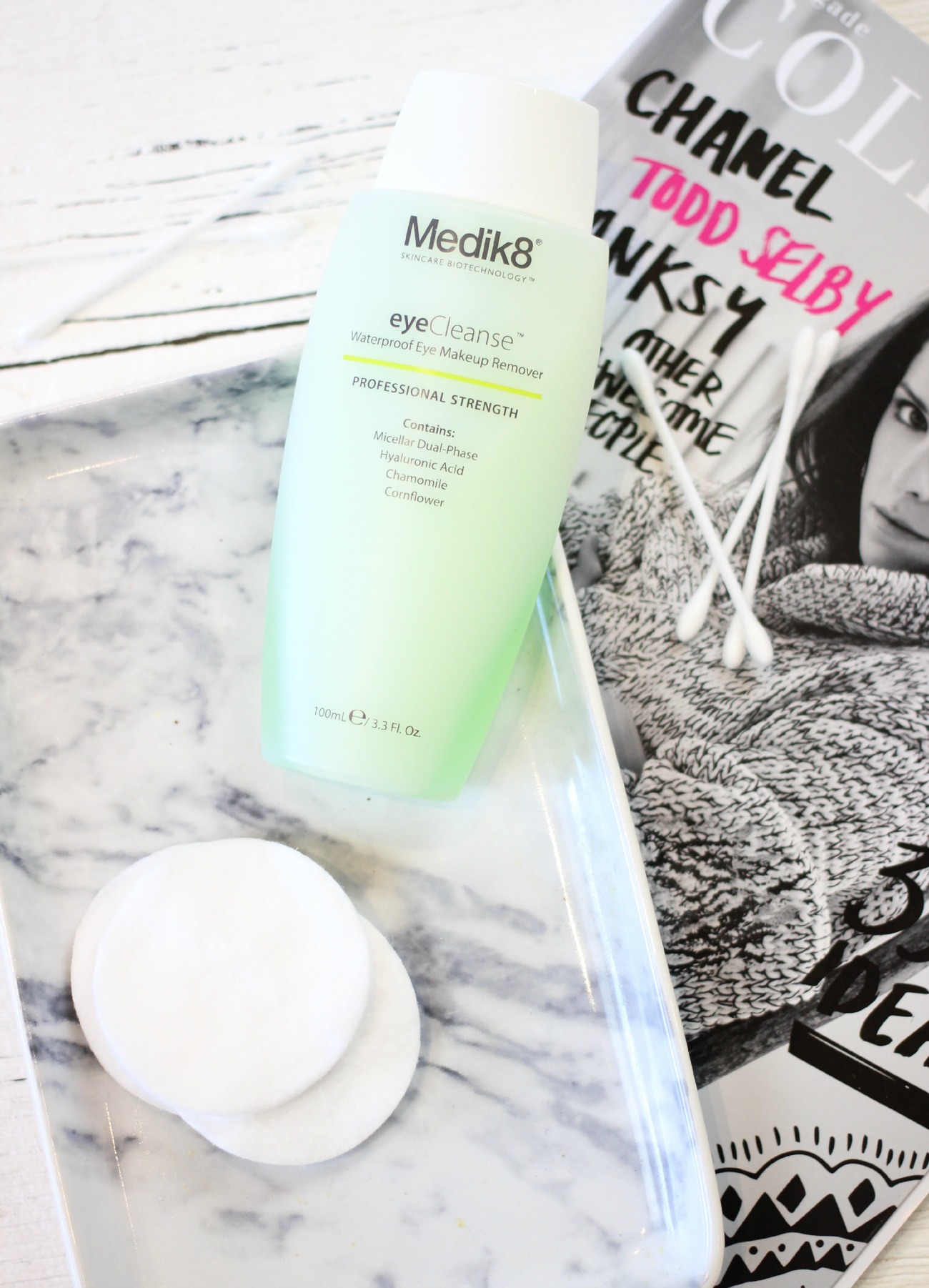 When the Medik8 Eye Cleanse press release came into my inbox I didn’t think it’d be for me. I saw the words ‘micellar’ and instantly thought it wouldn’t budge the waterproof mascara I wear on a daily basis. Boy was I wrong! A tiny bit of this applied to a cotton pad and gently swiped over the eye removers almost everything, with the second swipe your eye make up is all gone. It’s insane! The formulation is completely unlike anything I’ve tried boasting a gel-like formula meaning it sits onto top of the cotton pads rather than soaking in. The best part? It’s so gentle! You may already know my eyes are fairly sensitive and this doesn’t irritate them at all. In fact, I think due to the hydraluronic acid, my eye area always feels super soft and nourished after using.