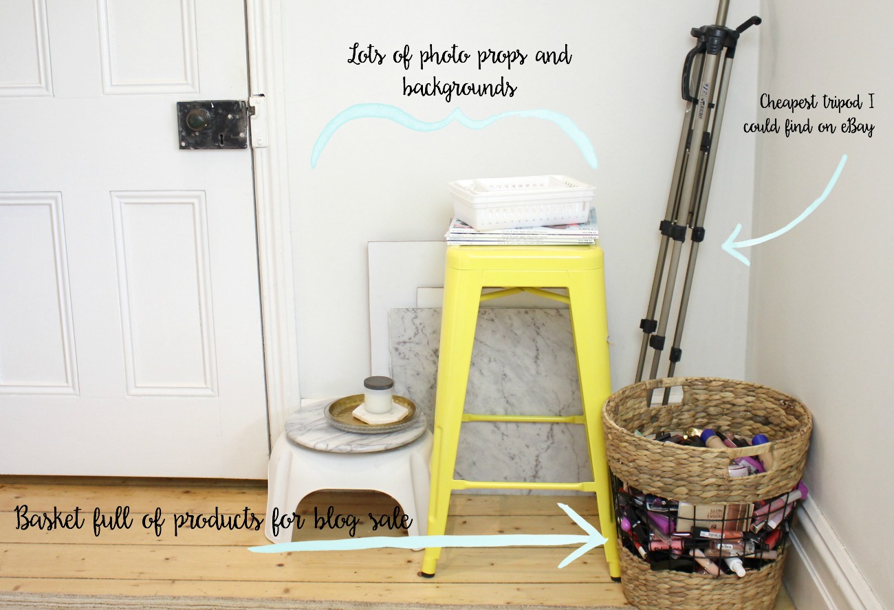 I don’t have the best storage solution for my photography props but the corner stash doesn’t bother me. I thought about getting a bookshelf but as I said we’re in a rental so I don’t want to buy too many things until we buy a place. I’ve labelled most things above. Let me know if you have any questions about any of the items :)