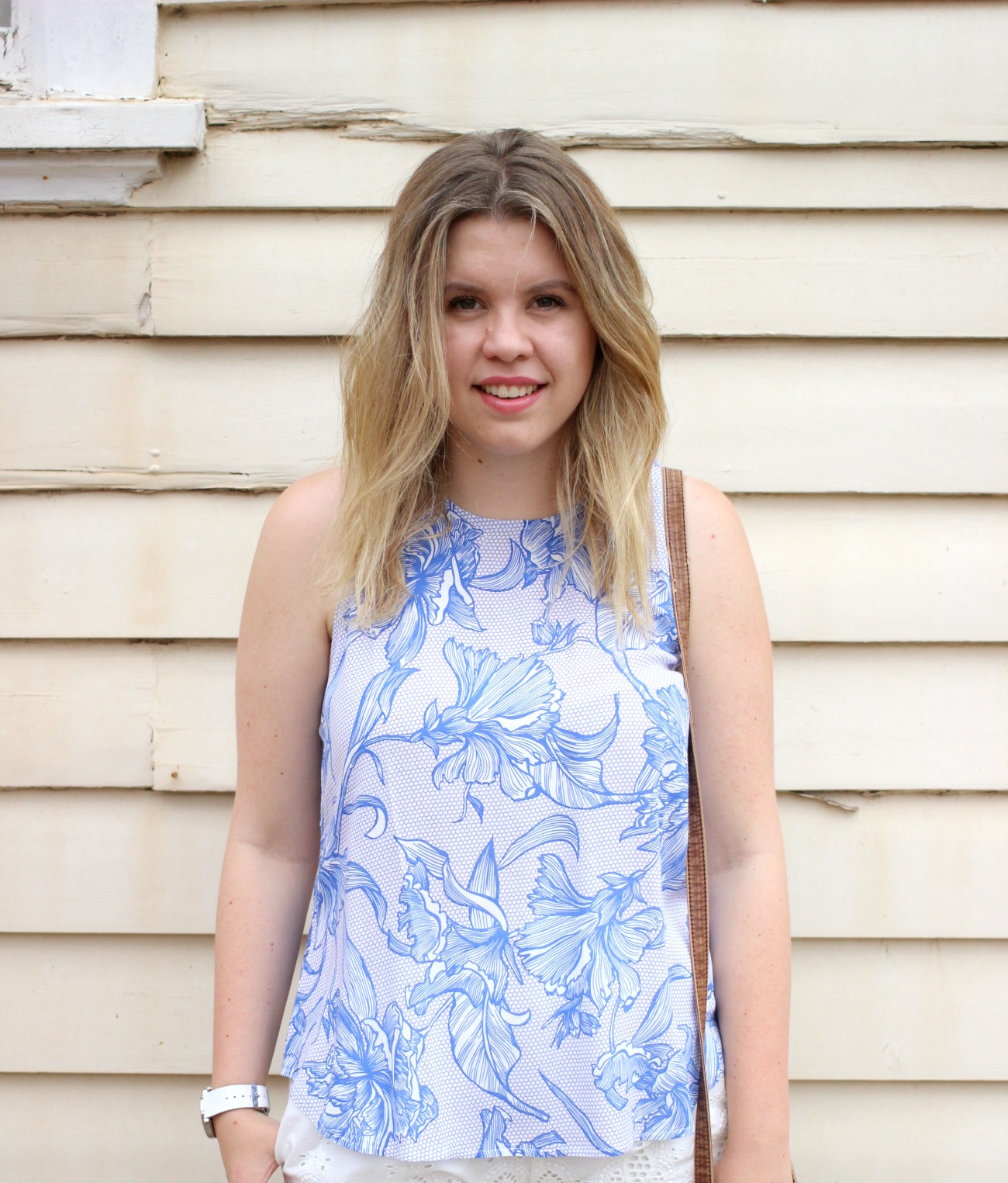 Sorry about my derp face in the first photo. These were taken on the first day of being sick so my eyes were itchy and sensitive to the sun #bloggerskeepingitreal. The top has to be one of my favourite items in my wardrobe at the moment. I don’t wear alot of prints but I find this ‘Maxine Top in Blue’ $39.90 so versatile and easy to wear. The flowy-ness of it makes it perfect for dinner dates too! Sometimes high necks can be unflattering on me because of my big boobs but this looks great!
