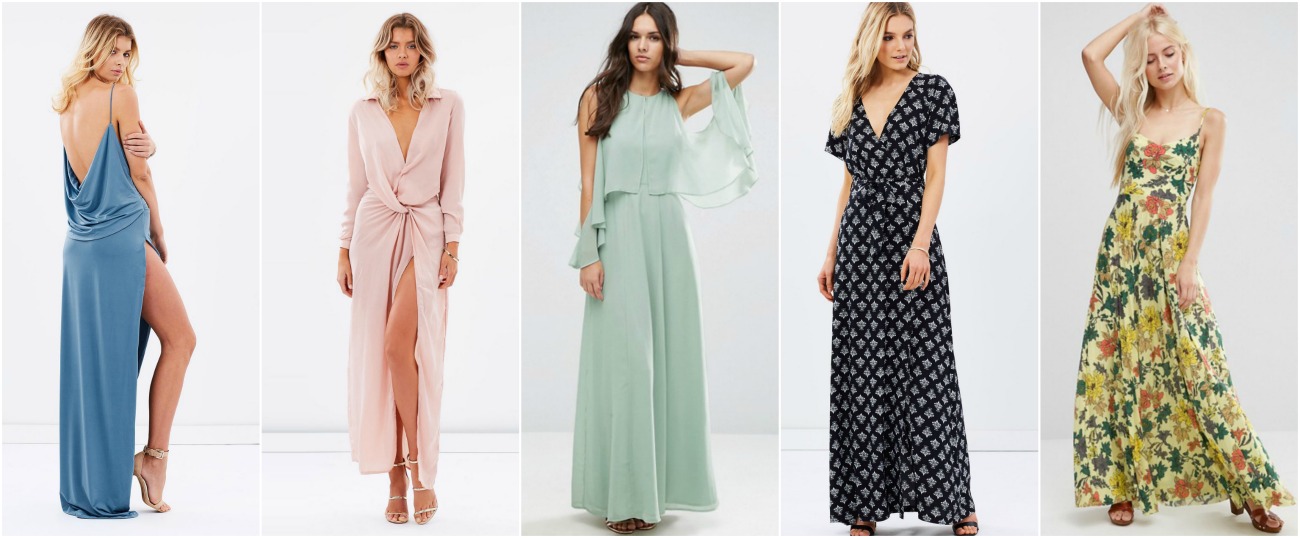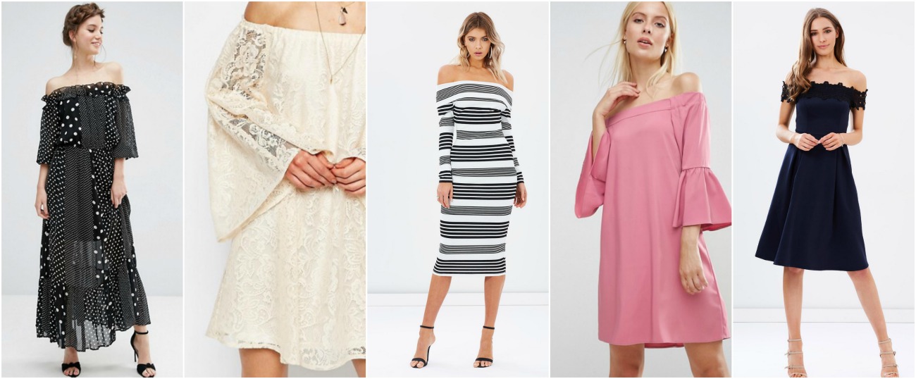 1. ASOS Maxi in Spot Print | 2. Vintage Off-The Shoulder | 3. Emerald Island Off The Shoulder | 4. ASOS Off the Shoulder with Fluted Sleeves | 5. Dorothy Perkins Fit & Flare