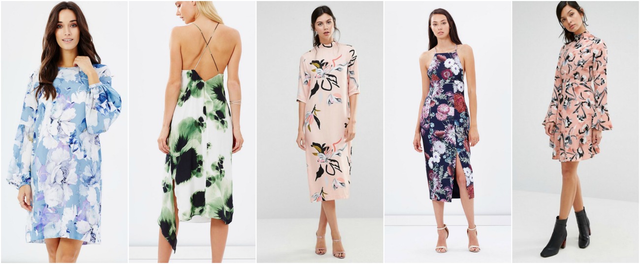 1. Cooper St More Than Anything Dress | 2. Opium Crossover Midi Dress | 3. ASOS Contemporary Floral | 4. Keepsake Billboard Dress | 5. Neon Rose High Neck Dress
