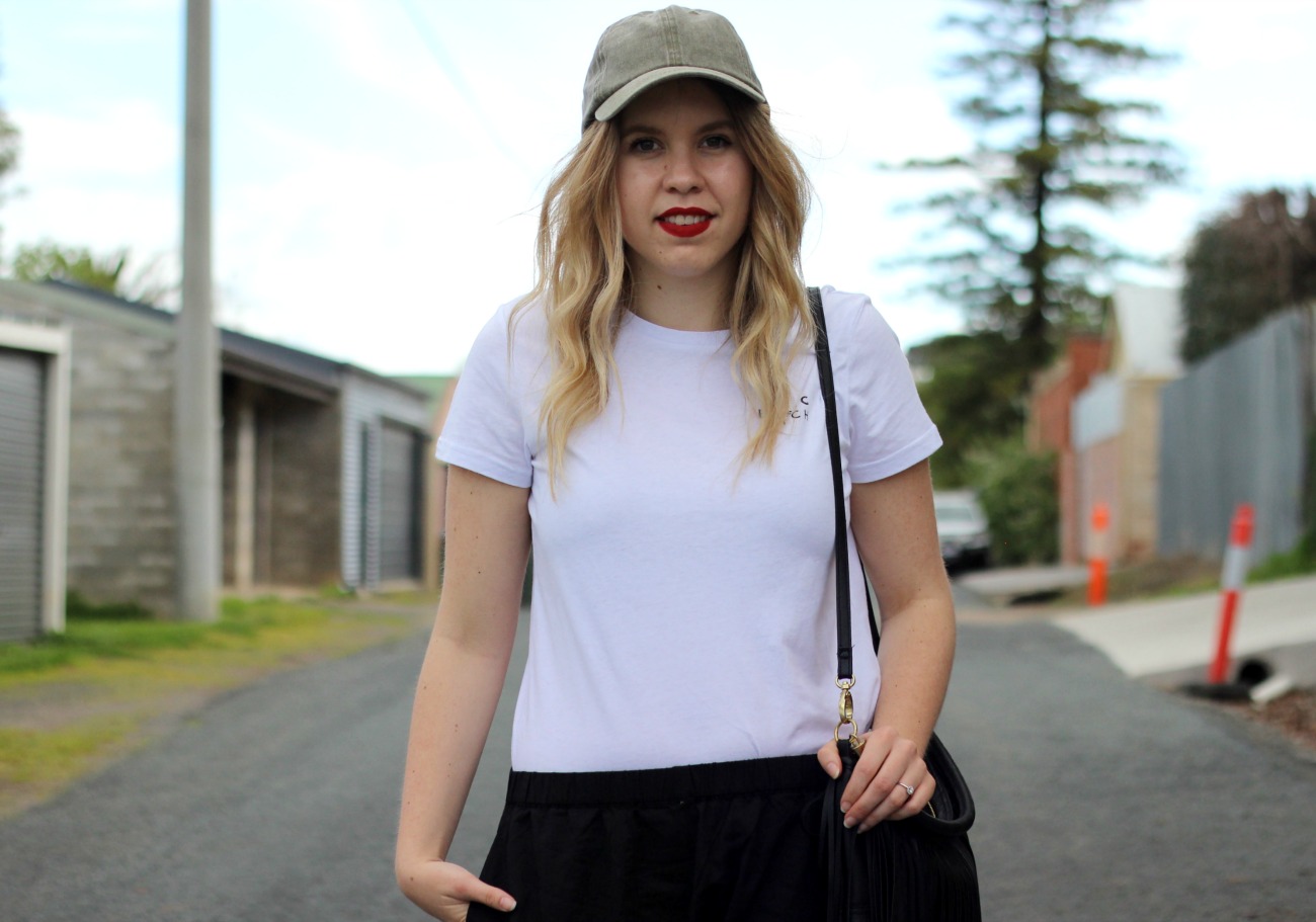 Finishing off the outfit and you can’t go wrong with a cap to hide your day-old curls that you’ve tried to brush out. Cotton On Body are currently doing caps for $5 with any purchase so I decided on the green however I think I need one in every colour because it’s so comfy! Another fail-safe way to hide your hangover is a bright lipstick and it really does detract from any under-eye bags or black smudges under the eyes. My pick was this Models Rock Lashes Liquid Lipstick shade however I wasn’t a huge fan of the way it applied or worn so I’ve linked over options below.