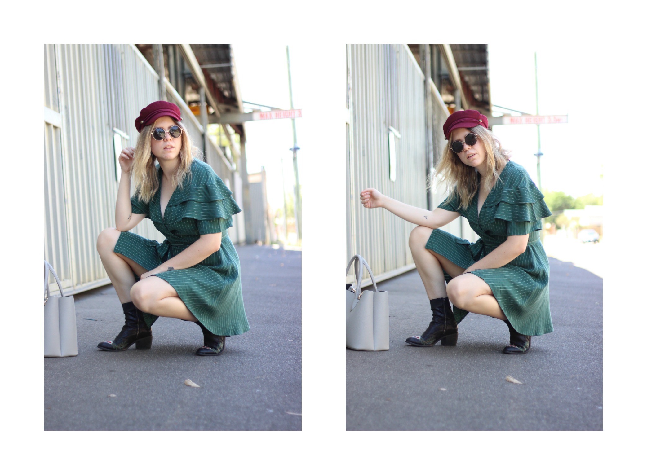 What I’m wearing: Imonni Aiden Dress (size 10, gifted) |Asos Baker Boy | Raen Round Sunglasses | Angela Roi Tote